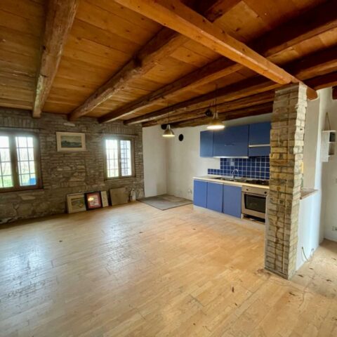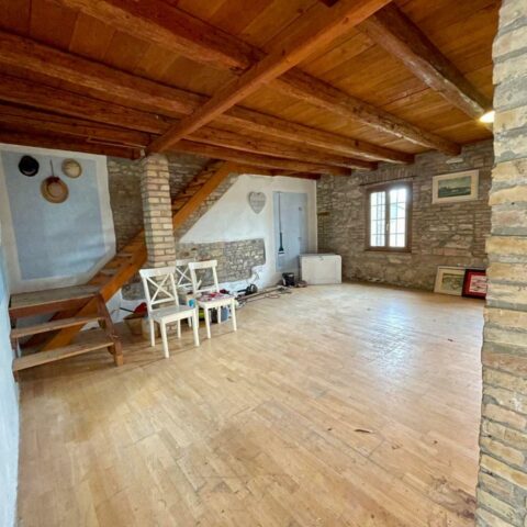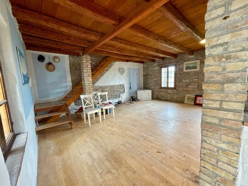 Nella tranquilla località di casali Franceschinis a metà strada tra Castions e Muzzana, casa in linea bicamere con adiacente ex stalla fienile in mattone e sasso a vista, affacciata sul giardino di 340 mq. La casa necessità di qualche lavoro di ristrutturazione ed è disposta su due piani con al piano terra la zona giorno con cucina a vista e al primo piano unico vano dove si possono ricavare due camere, inoltre la soffitta presenta altezze abitabili permettendo di ricavare due camere. Tanto altro spazio da personalizzare nel fabbricato accessorio che necessita di essere ristrutturato. I caldi soffitti in legno con travi a vista e le pareti in sasso regalano agli ambienti un animo rustico. Ottima opportunità anche per chi cerca un appoggio per le vacanze a breve distanza dal mare. Rif. 189967