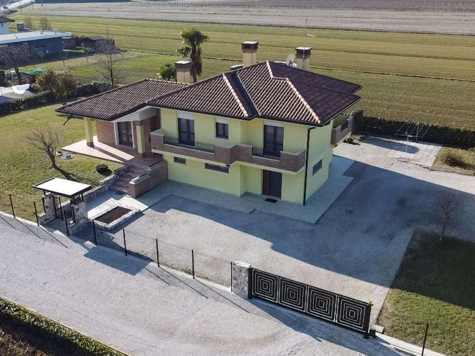 Non lontano da Marano Lagunare, in zona tranquilla e immersa nel verde proponiamo una impeccabile e recente villa indipendente di ampia metratura circondata da un curatissimo giardino di circa 1600 mq e da adiacenti ulteriori 3900 mq di terreno agricolo. Sviluppata su piani sfalsati accoglie al piano rialzato una luminosa e ampia zona living, la cucina abitabile tre camere spaziose e il bagno; al piano terra una splendida e ampia taverna e i locali di servizio. A completare la proposta il doppio garage . La soluzione ideale per la famiglia alla ricerca di spazio e indipendenza! Rif. 210711