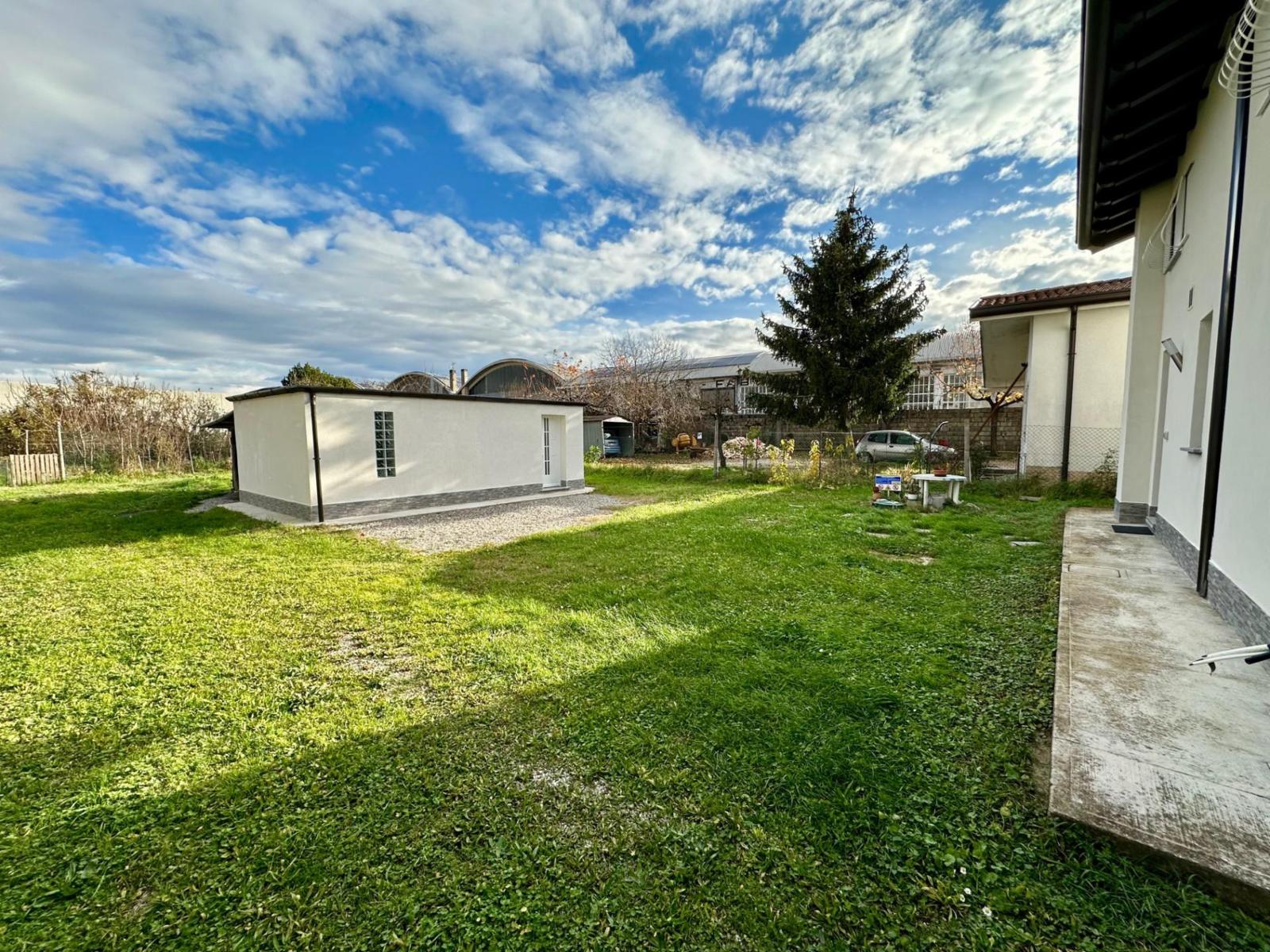 Scopri questa splendida villetta singola situata in una tranquilla zona fuori dal centro abitato, ideale per chi cerca privacy e serenità senza rinunciare al comfort. La proprietà, completamente ristrutturata, si sviluppa su due livelli: al piano terra trovi una cucina moderna con accesso al giardino posteriore, un bagno di servizio ed un intimo salottino impreziosito da scale in legno a vista che conducono al piano superiore. Qui sono raccolte due camere da letto e un secondo bagno. All’esterno, un ampio giardino di circa 600 mq avvolge l’intera casa, offrendo spazi ideali per momenti di relax, giochi e convivialità. Sul retro, una deliziosa dependance con bagno può essere trasformata nel tuo spazio di lavoro o una zona dedicata agli amici. La proprietà vanta numerosi interventi di recente ristrutturazione: cappotto termico, solai e tetto nuovi, serramenti elettrici, predisposizione per impianto fotovoltaico, solare termico e climatizzazione, garantendo efficienza energetica e comfort. Rif. 224005