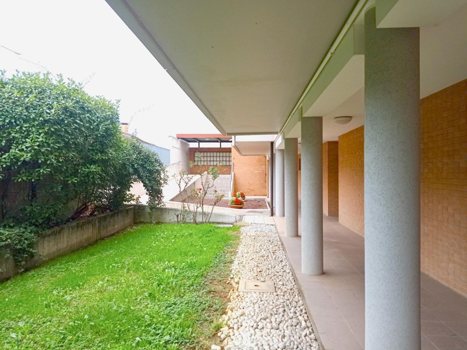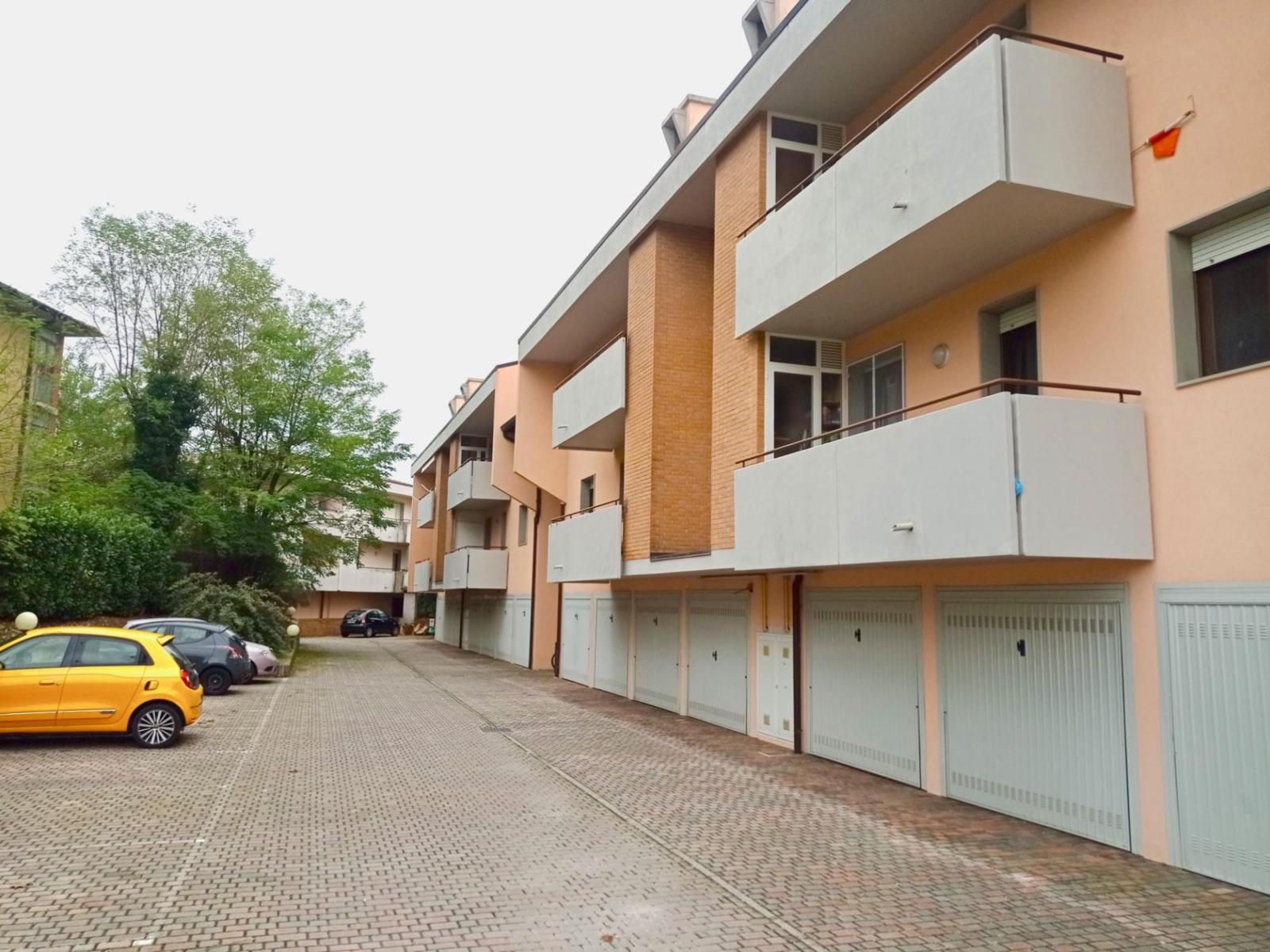 Interessante appartamento bicamere, situato in palazzina ottimamente mantenuta e con giardino verde sempre ben curato. Posto al 1°piano, vanta un ampio terrazzo dall’utile profondità per tavolo e sedie e con vista sul verde, lontano dai rumori della strada. Gli spazi interni offrono un soggiorno con zona cucina e affaccio al terrazzo, camera matrimoniale molto spaziosa con cabina armadio a vista e affaccio al terrazzo, seconda camera e bagno finestrato con vasca. Completo anche di cantina e garage al piano terra. Riscaldamento autonomo a metano e finiture fine anni ’90. Il contesto residenziale del complesso Borgo Verde è particolarmente tranquillo e completamente recintato e curato con giardino piantumato e zona parcheggi esterni. Opportunità vantaggiosa, disponibile e abitabile da subito. Rif. 225708