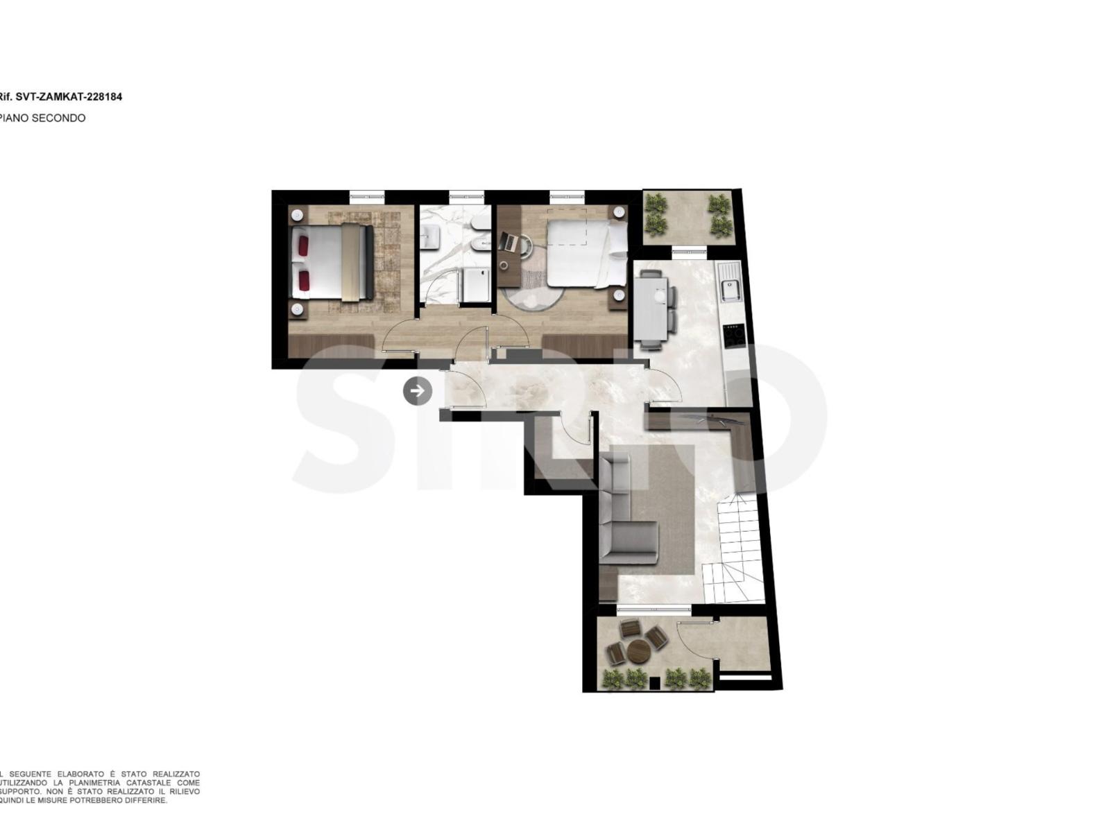 SuperficieDisposto su due livelli e comodamente servito da ascensore, spazioso appartamento tricamere con le finiture personalizzabili comprese nel prezzo. Un’abitazione disposta al piano secondo e terzo, composta al piano secondo da ingresso, soggiorno con terrazzo caratterizzato da un bellissimo scorcio sul campanile, cucina abitabile con vista sul parco interno, due camere da letto e bagno. Al piano terzo, invece, dispone di meraviglioso soppalco di 19 mq con affaccio sul soggiorno sottostante, grande disimpegno, camera matrimoniale di ben 18 mq e secondo bagno. In più, garage e tutta la comodità di vivere nel cuore del paese! Rif. 228184