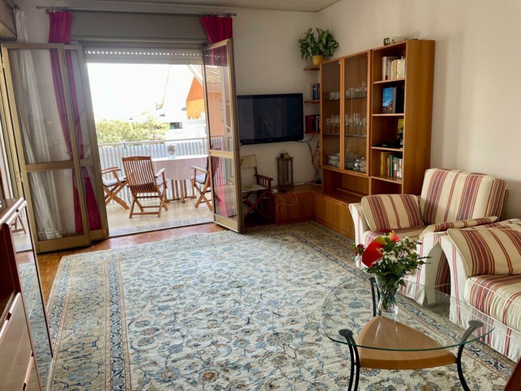 Situato al terzo piano di una palazzina con ascensore, si compone di un luminoso soggiorno con cucina separata, terrazzo abitabile arredato e corredato di tenda da sole, perfetto come zona pranzo all’aperto, una camera matrimoniale, un bagno con spazio per la lavatrice e le scale che conducono al piano superiore, dove troviamo un sottotetto utilizzabile come seconda camera, zona ospiti o relax, con finestre Velux che offrono vista sulla laguna e sul Santuario di Barbana. Il sistema di aria condizionata e il riscaldamento autonomo con caldaia a gas metano, garantiscono un clima ideale tutto l’anno. Questa proprietà è particolarmente adatta a famiglie con bambini o a chi desidera trascorrere le vacanze in una zona comoda, tranquilla e ben collegata, con tutti i servizi a portata di mano e una splendida vista sulla laguna. La combinazione di funzionalità, comfort e arredamento incluso rende questa soluzione un’occasione da non perdere.. Prenota la sua visita, ti aspettiamo!!! Rif. 229282
