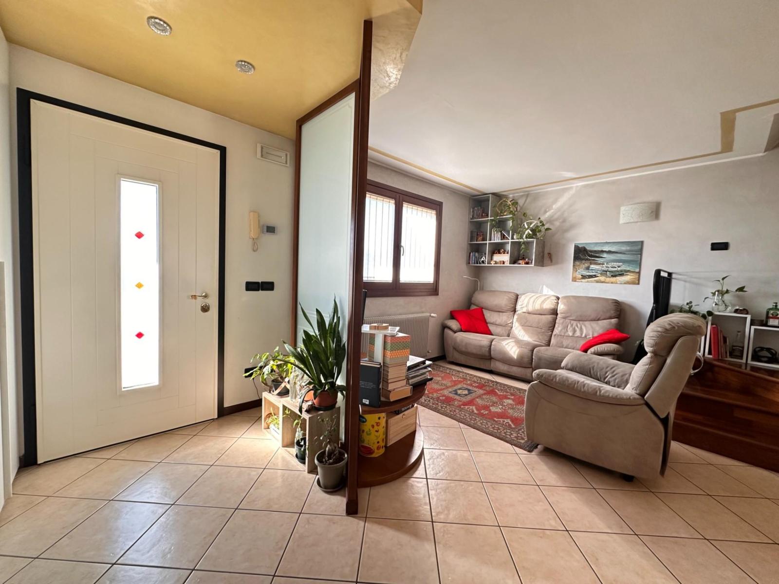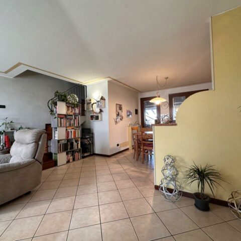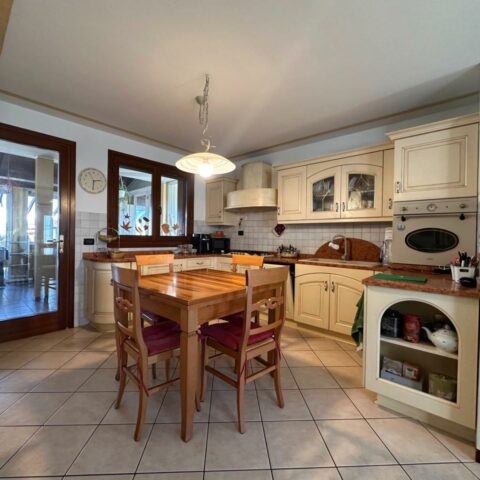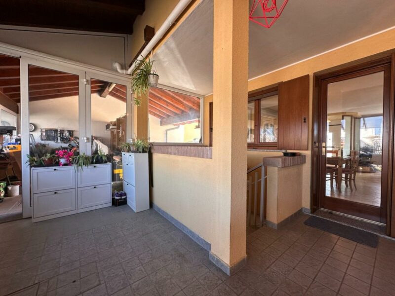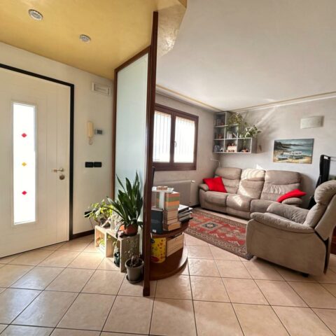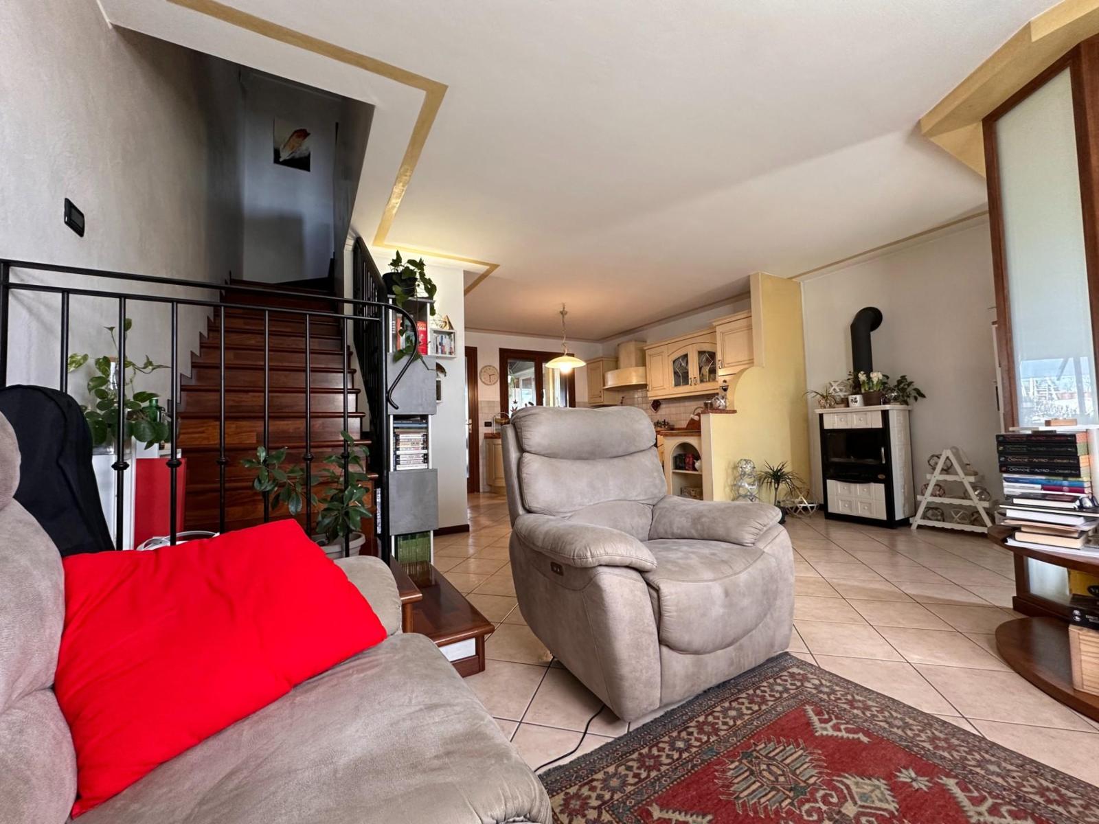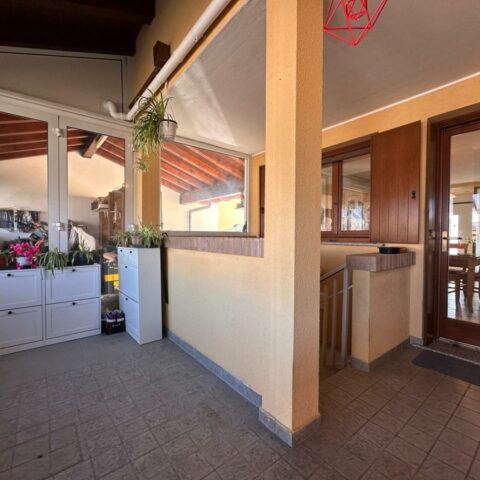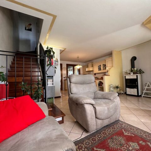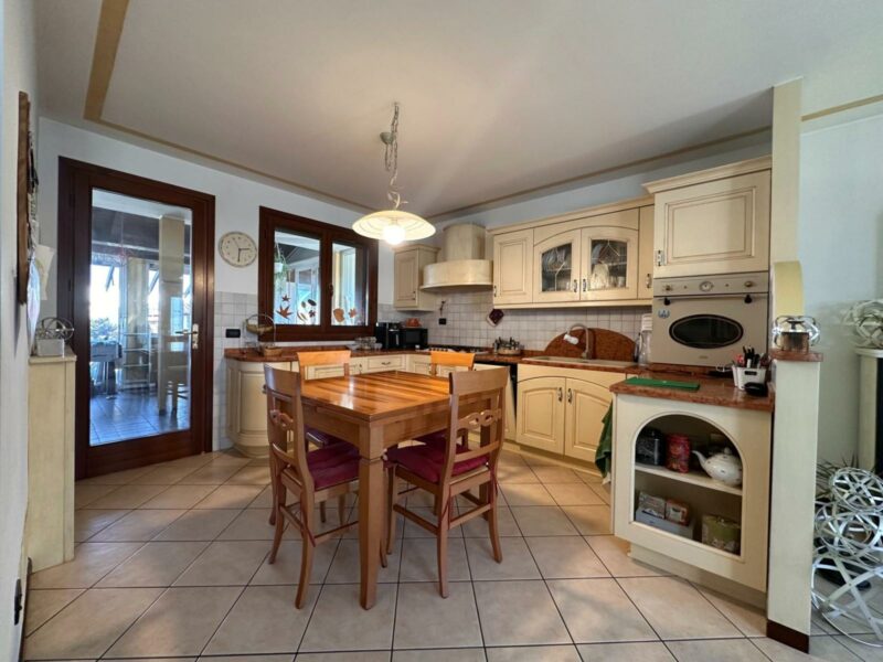 L’abitazione si sviluppa su due livelli oltre alla cantina interrata. Al piano terra troviamo un luminoso openspace con cucina e soggiorno, un bagno di servizio e l’accesso a una piacevole veranda riscaldata affacciata sulla corte sul retro, collegata sia alla cantina sia al porticato esterno. Il piano superiore ospita la zona notte con due camere da letto, di cui una con accesso al terrazzo, uno studio e un bagno completo. L’esposizione favorevole garantisce ambienti sempre luminosi, inseriti in un contesto silenzioso e con vista aperta sulla campagna. Completa la proprietà l’impianto fotovoltaico da 6 kw con due batterie d’accumulo per totali 10 KW, un valore aggiunto che contribuisce all’efficienza energetica della casa. Una soluzione perfetta per chi cerca comfort, qualità costruttiva e spazi esterni ben vivibili. Rif. 230037