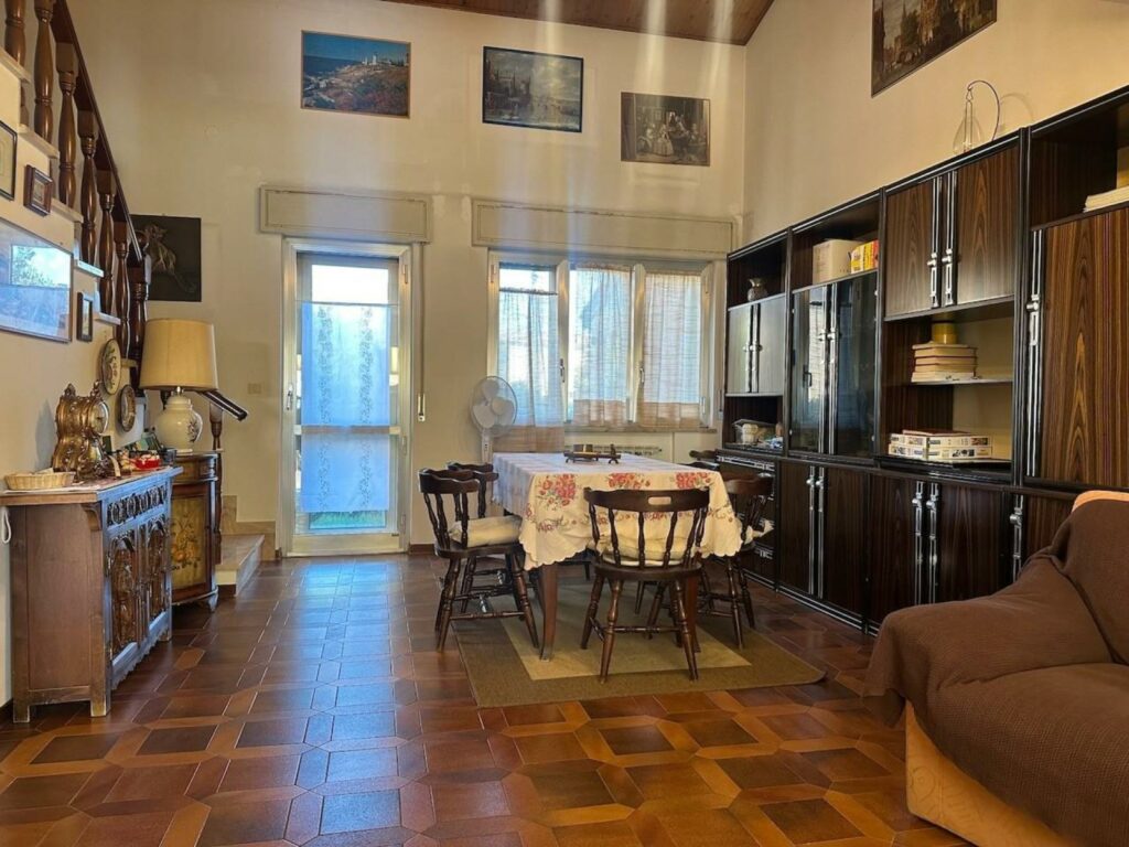 In contesto residenziale, adiacente a tutti i servizi essenziali, villaschiera di testa degli anni ’70, indipendenza su 3 lati con spazi generosi, oltre 180 mq, ben distribuiti tra i piani e arricchita da un bel giardino recintato di 350 mq. Le dimensioni di una volta garantiscono il giusto spazio per le necessità di tutti i componenti della famiglia. Un soleggiato portico ci conduce all’ingresso che ben suddivide gli ambienti del piano terra. La zona giorno è composta da un accogliente e luminoso salotto / soggiorno con doppia esposizione e da una funzionale cucina di oltre 10 mq, separata e completa di pratica veranda, entrambi con accesso diretto al giardino. Sempre al piano terra un ulteriore stanza, che può essere adibita a studio o sala hobbies. Attraverso una scala accediamo al piano superiore dove un funzionale e versatile soppalco dona privacy alla zona notte che comprende tre camere da letto, tutte rifinite con tradizionale pavimento in legno di rovere. I bagni sono tre a servizio dei piani, tutti finestrati. Al piano seminterrato trovano spazio, una taverna di oltre 20 mq con possibilità di ingresso indipendente e riscaldata da un caldo caminetto a legna, ideale per pranzi e cene con gli amici, un garage doppio con basculante motorizzato e ripostigli che garantiscono ulteriore spazio di deposito. Da rimodernare e personalizzare, ideale per famiglie numerose e amanti della tranquillità. Rif. 230932