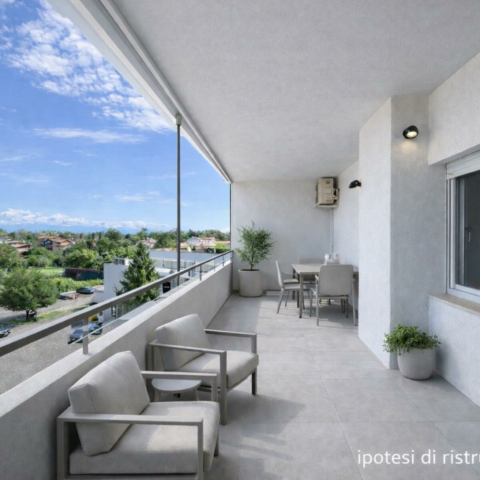 In pieno centro, al terzo piano di un condominio dotato di ascensore, ampio e luminoso appartamento bicamere di circa 105 mq. con splendido terrazzo di ben 22 mq. Ampia la zona living che si affaccia sul terrazzo con ampia vista aperta sulla cittadina, cucina abitabile, pratico ripostiglio e due comode camere. Completa la proposta il posto auto nella corte interna. Termoautonomo e subito abitabile! RIF. 230985
