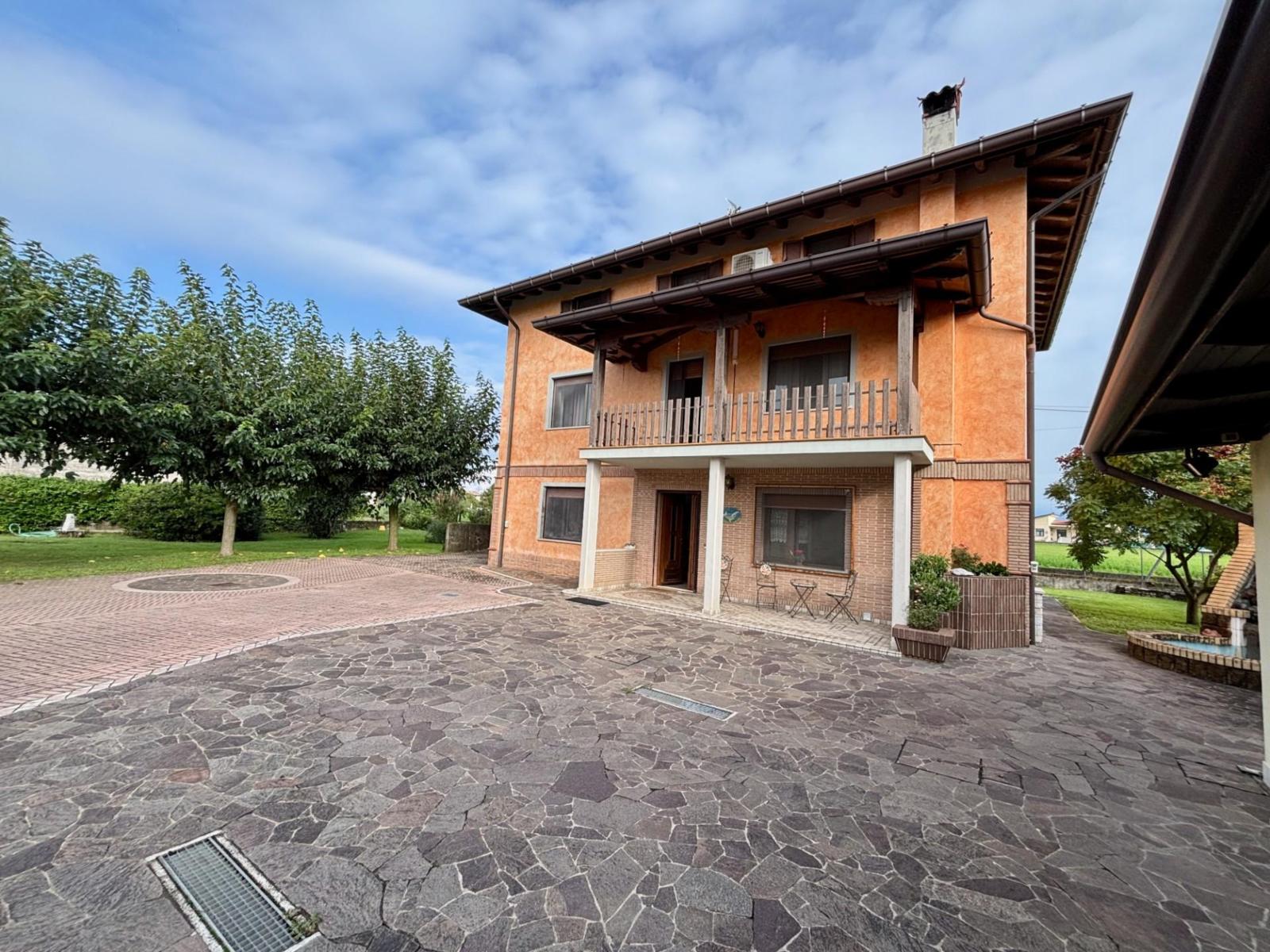 A soli 5 min da Spilimbergo e 10 min da San Daniele, situata in zona tranquilla di campagna, curata casa indipendente dallo stile rustico, ristrutturata preservando il fascino originario: pareti in sasso, travi in legno a vista che regalano ambienti caldi e accoglienti. Disposta su tre piani più lo scantinato, l’ingresso alla zona giorno avviene da un porticato adibito a soggiorno estivo, cucina separata dal soggiorno, bagno e locale c.t. La zona notte al primo piano include tre spaziose camere matrimoniali, ampio bagno ed un terrazzo. All’ultimo piano, meravigliosa mansarda open space con travatura a vista. A completare questa occasione unica nel suo genere, doppio garage, varie dipendenze uso ripostiglio e scoperto piantumato di 1.600 mq più ulteriori terreni adiacenti per un totale di 5.310 mq. Perfetta per famiglie che amano la natura o per attività B&B. RIF. 231244