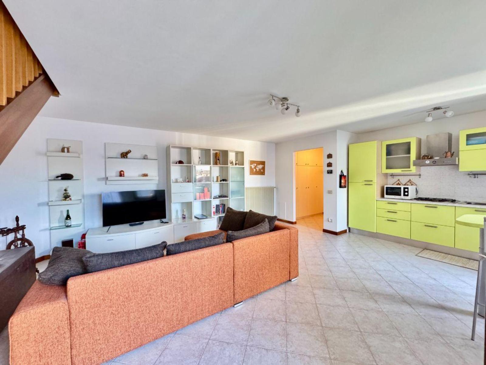 Nel cuore di Cormons, a pochi passi dalla servita Piazza Libertà, in condominio completamente ristrutturato nel 2001, composto da sole 6 unità e senza spese condominiali, ti attende un appartamento pronto da vivere, curato nelle finiture e progettato per offrire il massimo comfort. Una soluzione ideale per una coppia giovane alla ricerca della prima casa, o per chi desidera indipendenza e ambienti funzionali a due passi dal suggestivo centro cittadino. L’ingresso si apre su un’ampia zona giorno open space di 35 mq, con cucina a vista e accesso al terrazzo di 16 mq, perfetto per colazioni all’aperto o momenti di relax con affaccio sulla riservata corte interna. Sullo stesso livello è presente un comodo primo bagno. Il piano superiore, completamente mansardato e molto accogliente, è dedicato alla zona notte, composta da due camere da letto ben organizzate e un secondo bagno. La possibilità di parcheggiare nella corte interna aggiunge un ulteriore plus alla proprietà. L’appartamento rappresenta una soluzione subito pronta da vivere, all’interno di un contesto giovane, curato e piacevole. Perfetto per chi vuole vivere il centro con tutte le comodità… senza rinunciare a nulla. Rif. 232690