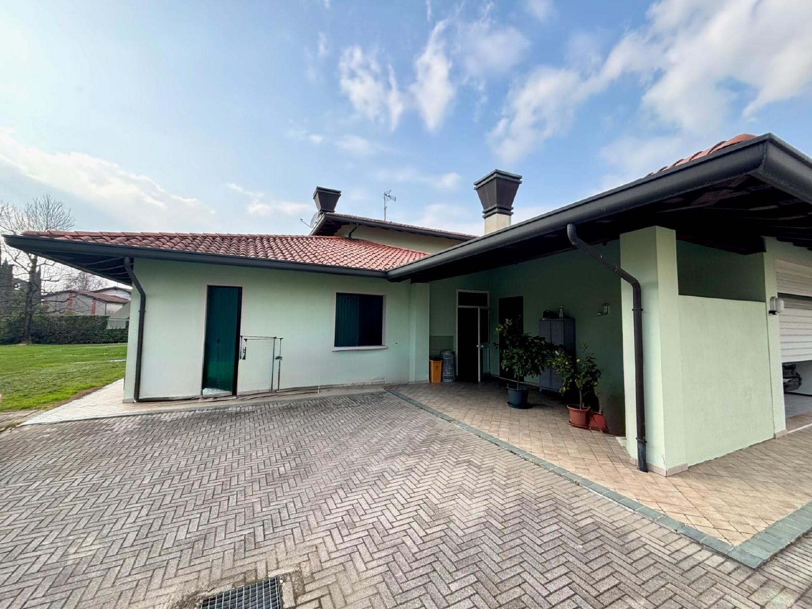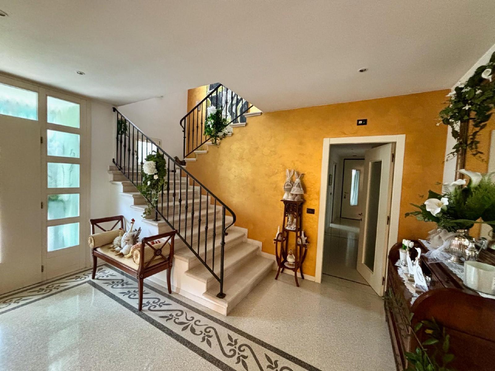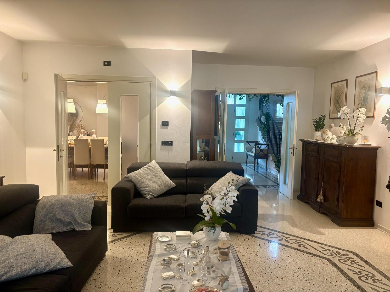 SuperficieUna casa indipendente del ’95 che unisce eleganza, comfort e una qualità costruttiva difficile da trovare oggi: questa proprietà si sviluppa principalmente su un unico livello, offrendo spazi ampi, luminosi e rifiniti con materiali di pregio, immersi in un parco privato di ben 1.700 mq che avvolge l’abitazione in un’atmosfera di assoluta riservatezza. L’ingresso al piano terra conduce a una zona giorno di grande rappresentanza, impreziosita da pavimenti in marmo e decorazioni artigianali che rendono ogni ambiente unico. Il soggiorno dialoga con una cucina spaziosa dotata di ripostiglio-dispensa e si apre verso un magnifico portico-veranda, perfetto per vivere l’estate in continuità con il giardino. La zona notte, rifinita in parquet di legno, offre comfort e privacy grazie a una camera matrimoniale con bagno privato, una seconda camera matrimoniale con cabina armadio e ulteriore bagno, oltre a un ripostiglio e a una lavanderia che completano la funzionalità del piano. Al primo piano si trova una vera suite padronale: una stanza esclusiva con bagno dedicato, ripostiglio e una terrazza privata che regala uno spazio intimo e panoramico, ideale per momenti di relax. Al piano interrato è presente una comoda cantina, utile per conservare vini, attrezzature o creare un ambiente dedicato ai propri hobby. La casa è dotata di impianto di riscaldamento a pavimento, aspirazione centralizzata e sistema d’allarme, elementi che ne elevano ulteriormente il comfort abitativo. All’esterno, oltre al grande giardino, si trovano un secondo porticato e un garage doppio, perfetti per chi desidera spazi coperti da vivere e sfruttare in ogni stagione. Una soluzione esclusiva! Rif. 233285